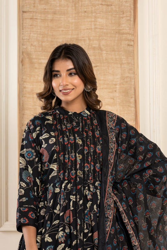 Floral Printed Anarkali Kurta Set | Cotton | Women's Ethnic Wear