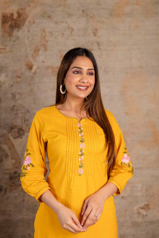 Floral Embroidered 2-Piece Co-ord Set – Olive Green and Mustard Yellow