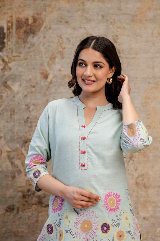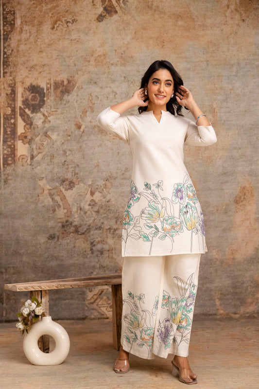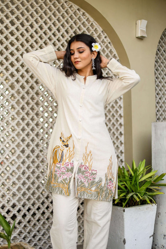 Nature-Inspired Embroidered Co-ord Set - Kurta and Pant